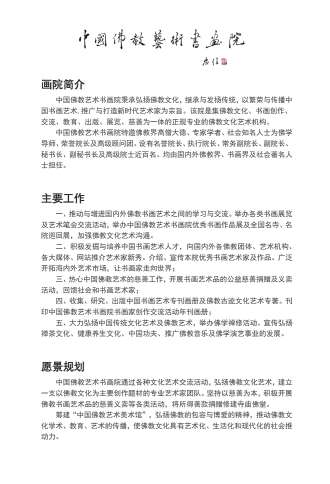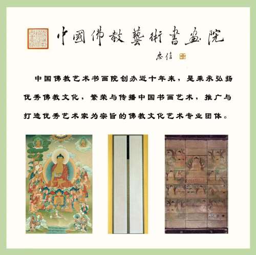 中国佛教艺术书画院秉承弘扬佛教文化,继承与发扬传统,以繁荣与传播中国书画艺术,推广与打造新时代艺术家为宗旨。该院是集佛教文化、书画创作、交流、教育、出版、展览、慈善为一体的正规专业的佛教文化艺术机构。